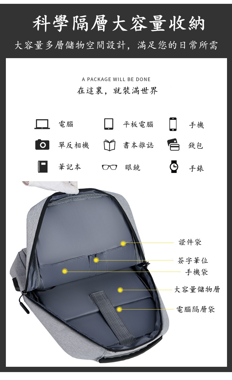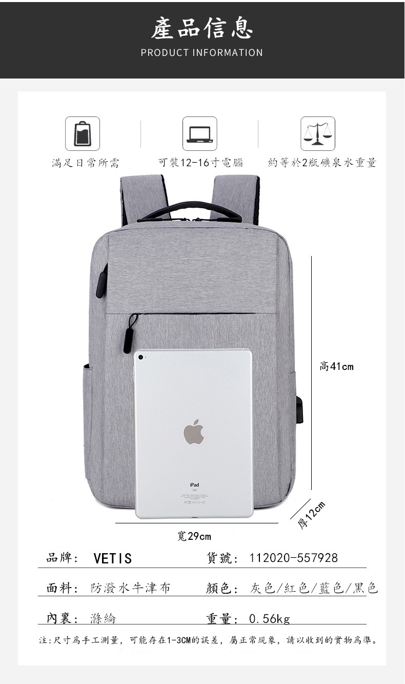 12分鐘前限時優惠 VETIS雙肩包 大容量帶USB充電口 商務電腦包 免運宅配 - 免運費3個 到手價=NT$1988
