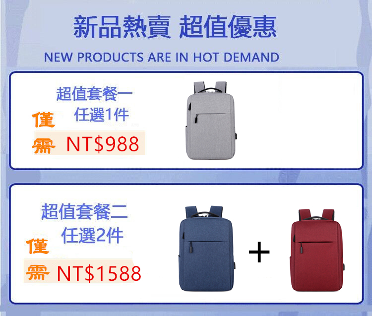 15分鐘前限時優惠 VETIS雙肩包 大容量帶USB充電口 商務電腦包 免運宅配 - 免運費3個 到手價=NT$1988