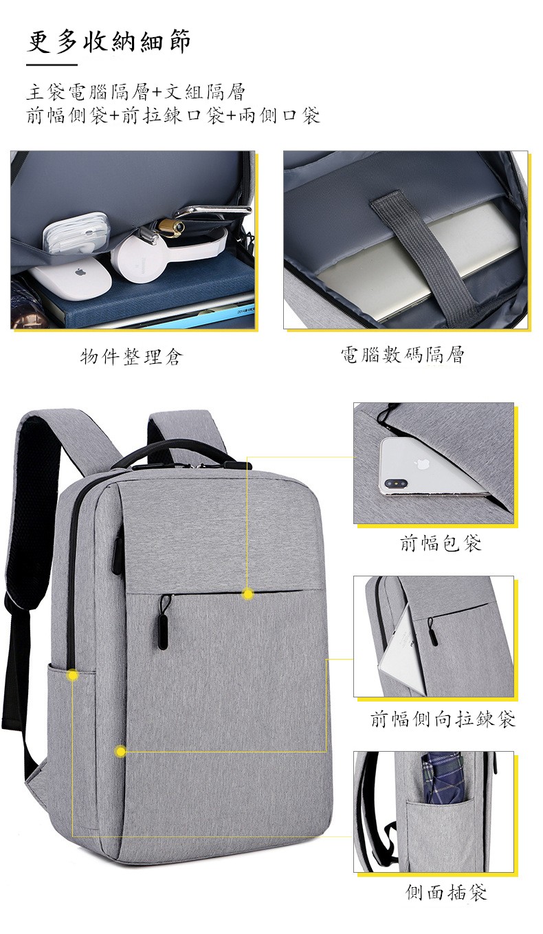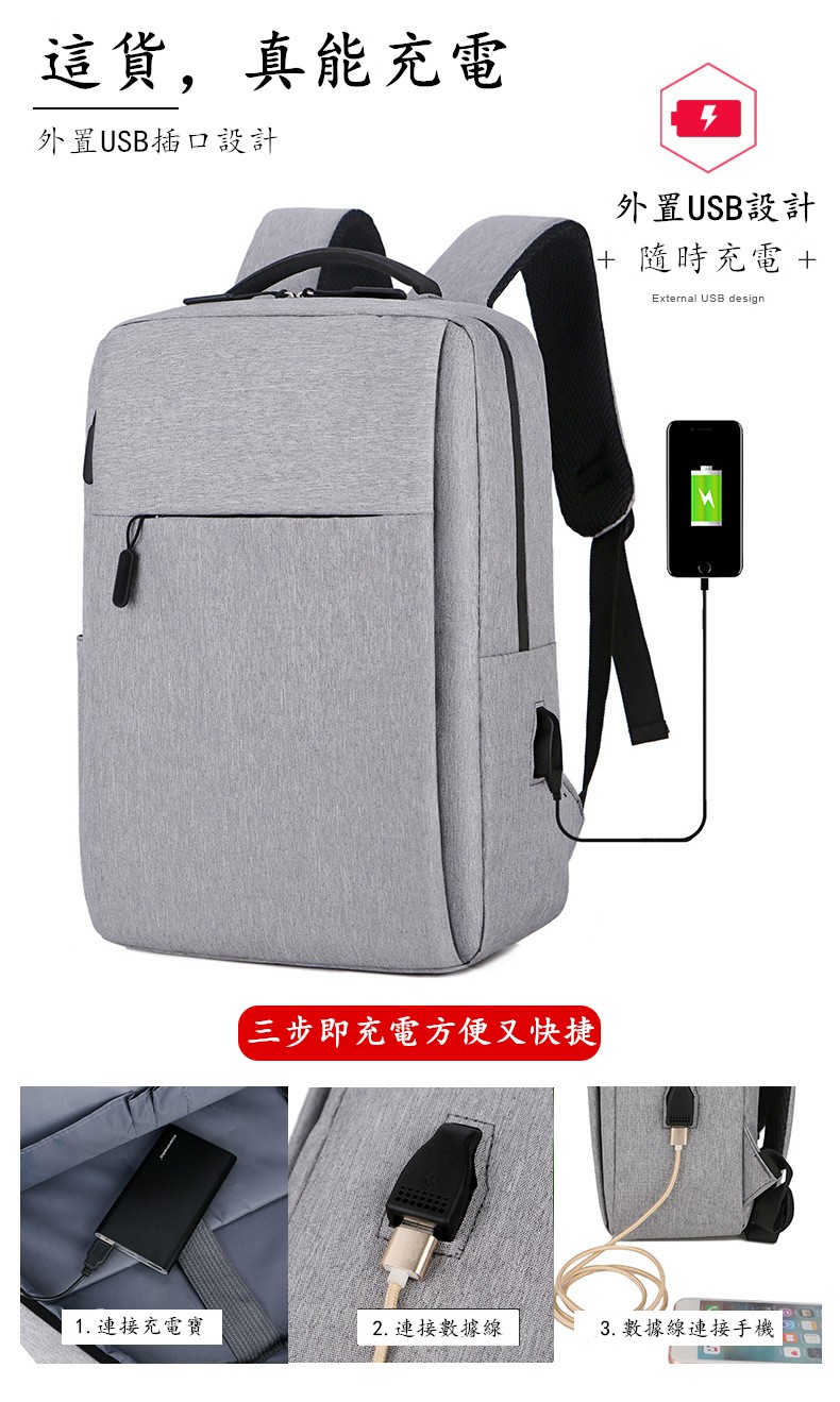 15分鐘前限時優惠 VETIS雙肩包 大容量帶USB充電口 商務電腦包 免運宅配 - 免運費1個 到手價=NT$988