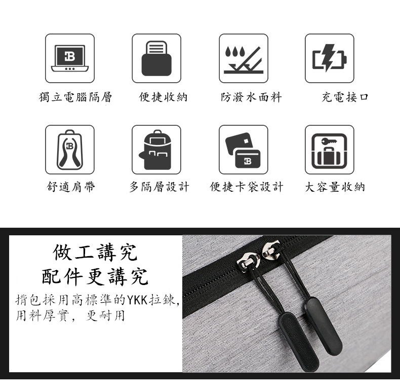 20分鐘前限時優惠 VETIS雙肩包 大容量帶USB充電口 商務電腦包 免運宅配 - 免運費1個 到手價=NT$988