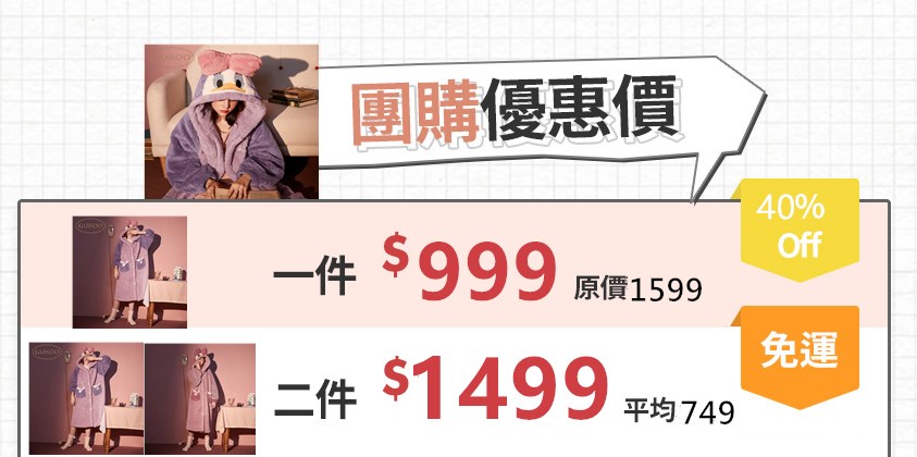 2分鐘前迪士尼官方合作款睡衣法蘭絨 果殼原創睡袍系列 家居外穿兩用 保暖加厚長款 套餐平均一入749 - 免運費2件 到手價=NT$1498