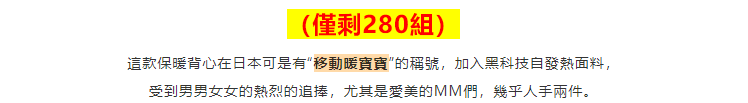 2分鐘前【日本MUMUWIE保暖背心】37°C恒溫發熱, 防風保暖,-20°C都不怕冷! 科學版型,顯瘦10斤!超透氣,超潤膚,舒適無痕!年終促銷!!!限時下殺280組! - 年終促銷【四入組】NT$1080,均價$270