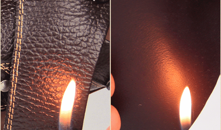 我們的 優質進口羊皮 完全無事 市面上的 假皮壞皮 一燒就破洞