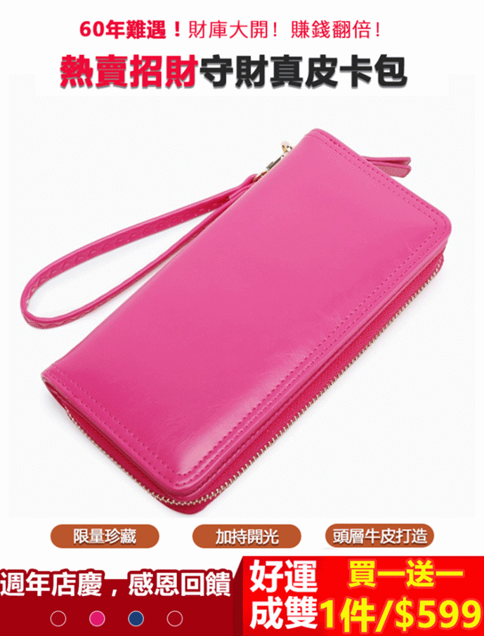 7分鐘前開年特優惠!【雨揚老師新品力薦】手拿意大利頭層牛皮皮包【直降NT$1000】【買一送一】+$200再得一個 - 【想要錢多到滿出來的小夥伴們】三入組 NT$1399